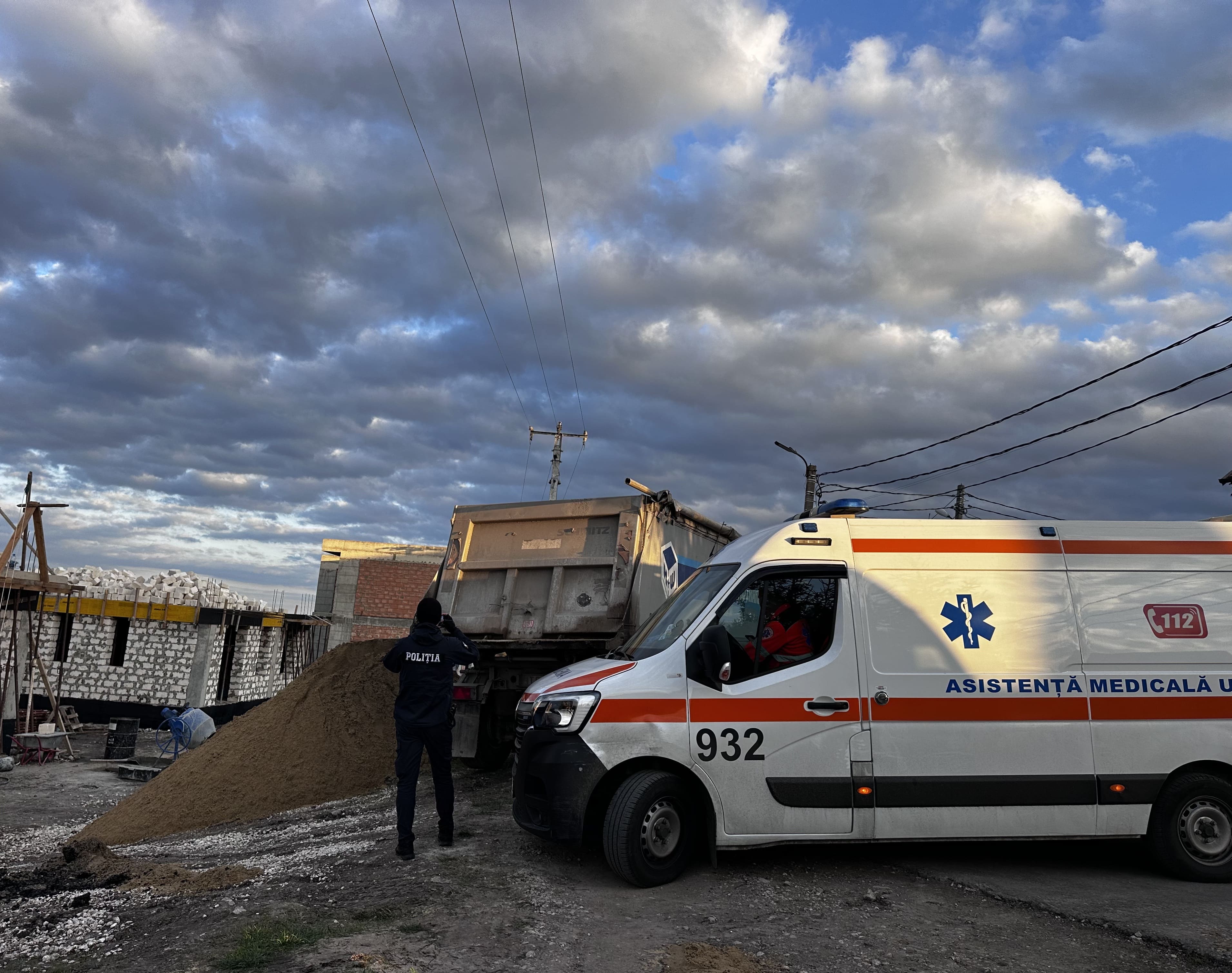- Incidentul a avut loc în timpul descărcării materialelor de construcție, când bena unei autobasculante ridicate s-a aflat periculos de aproape de conductorii unei linii electrice aeriene de medie tensiune (10 kV).
